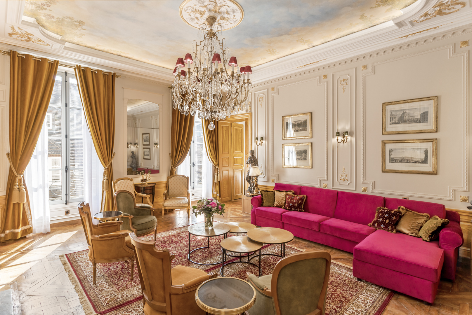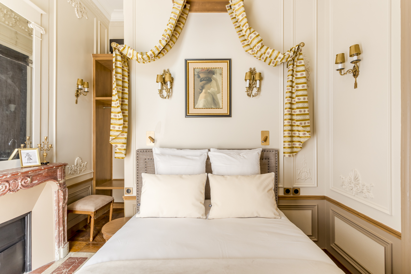 Située 4 rue de Braque, au cœur du Marais à Paris, la Suite Édouard prend place dans un hôtel particulier du XVIIIᵉ siècle, à seulement quelques pas des Archives Nationales. Entièrement rénové, ce lieu prestigieux marie harmonieusement le charme de l’ancien et le confort contemporain.