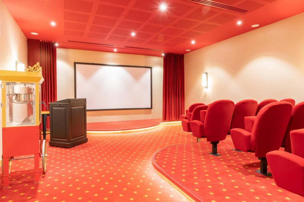 • La salle de cinéma retrouve toute sa dimension iconique avec le velours rouge.